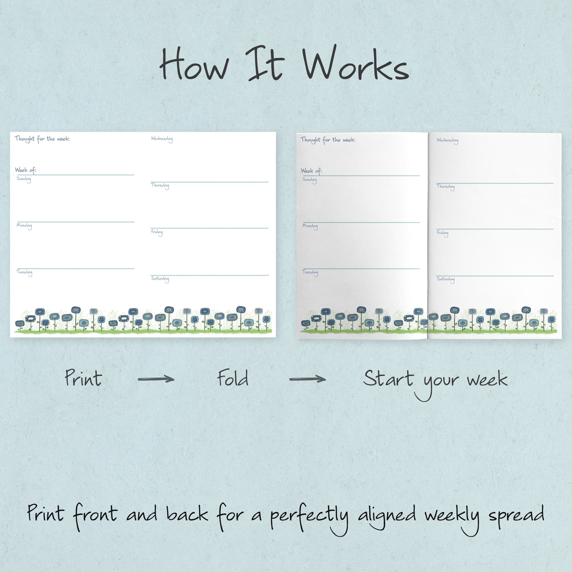 - Print front and back, then fold to create your booklet