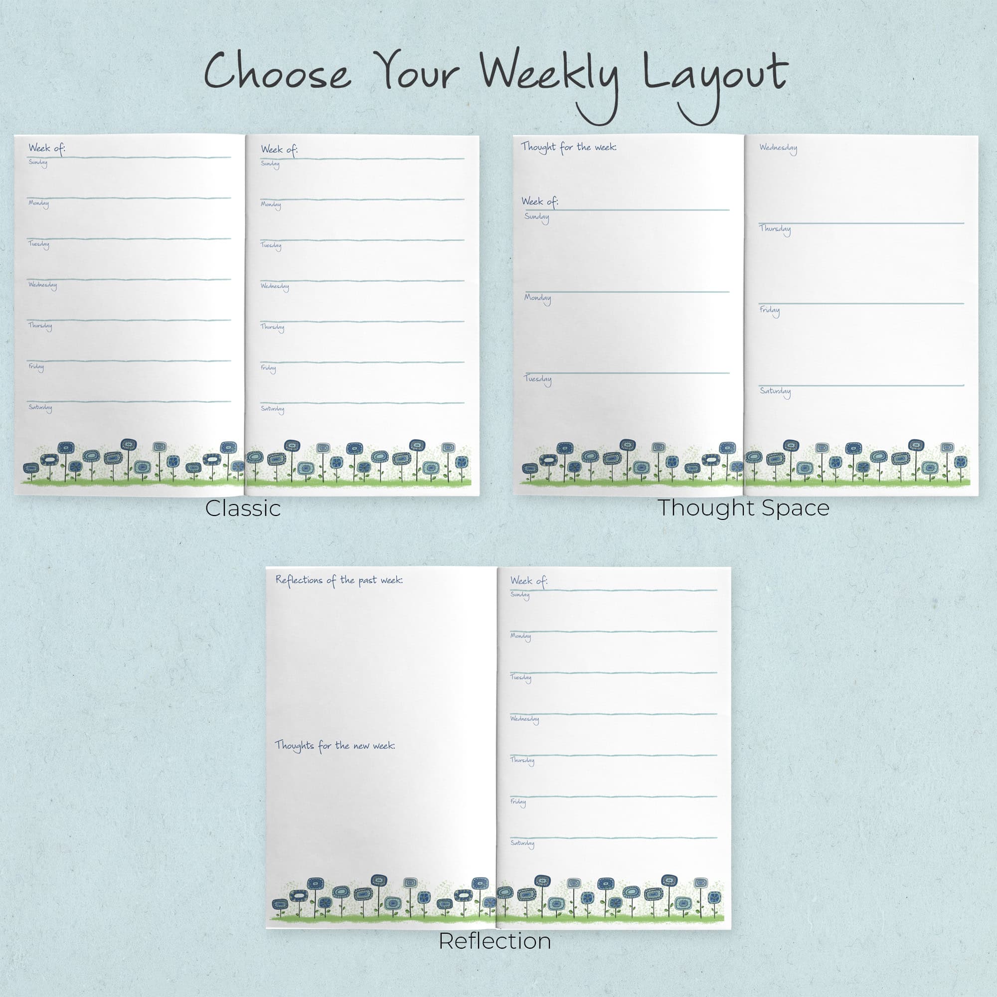 - 3 weekly layout options to choose from